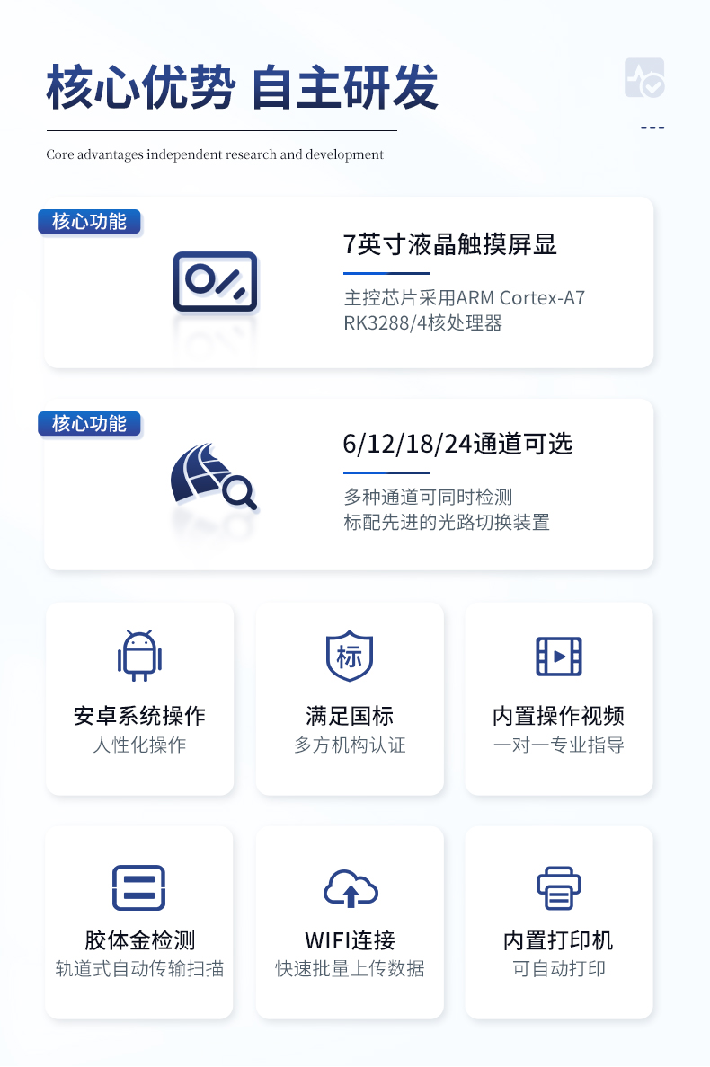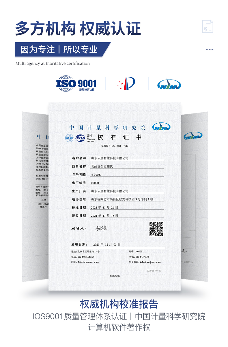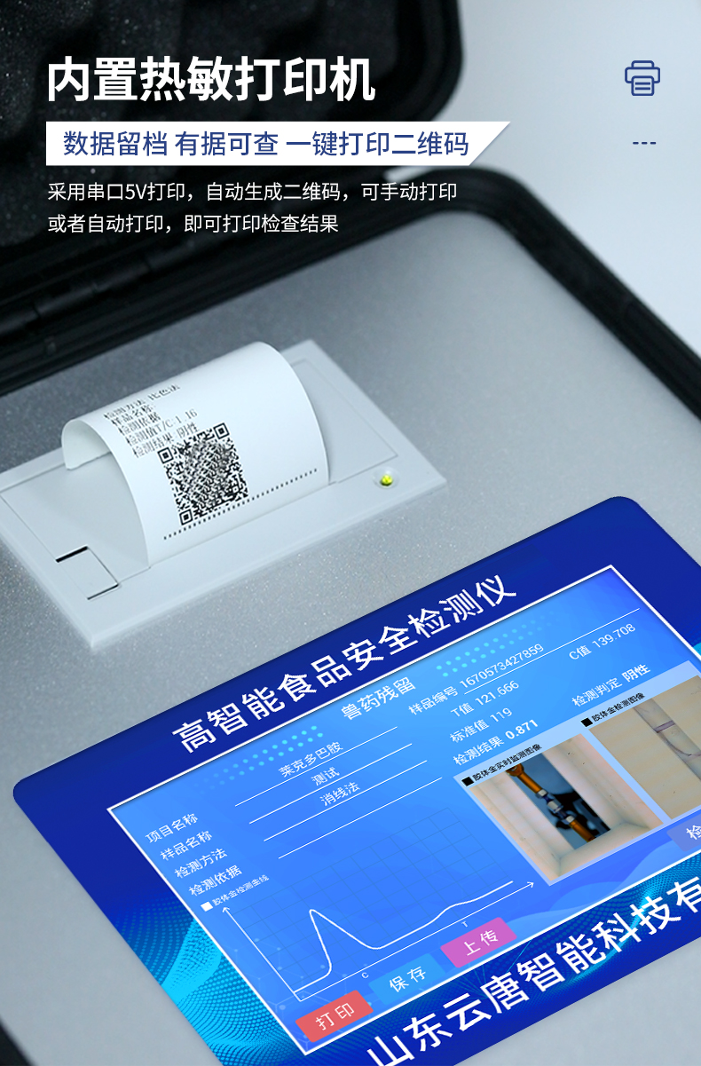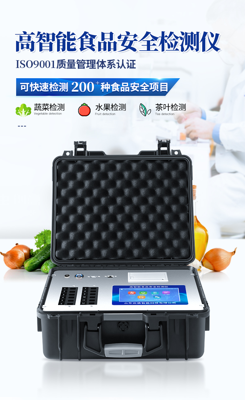 | 該儀器通過光電子技術(shù)對反應生成物的反射率進行分析測試,定量或定性分析樣品中待測物的含量。 | 安卓智能操作系統(tǒng),7英寸高靈敏真彩觸摸屏,更加**和人性化操作, | 儀器具有4G無線聯(lián)網(wǎng)、wifi聯(lián)網(wǎng)上傳、GPRS無線遠傳功能,快速上傳數(shù)據(jù)。 | 便攜式儀器,便于現(xiàn)場攜帶操作,主機重量不大于3kg。 | 具有可見光光源,可檢測可見光信號,檢測值0~30000。 | 具有常用打印機數(shù)據(jù)線接口,直接打印結(jié)果;配備USB接口,可連接網(wǎng)絡。 | 具有多個食品安全檢測項目,開放平臺,可以增減檢測項目。 | 檢測通道:12個檢測通道,可以同時測試多個樣品,每個樣品由程序控制分別獨立工作,不會互相干擾。 | 以模擬反射率的標準片為50%附近時為代表,精密度CV值≤0.8%。 | 供電電源:(220±22V)~50Hz±1Hz,供電電源電壓波動不應超過220V AC±10%。 | 內(nèi)置打印機,實時打印檢測結(jié)果。內(nèi)置大容量電池,便于現(xiàn)場執(zhí)法檢測。 | 高靈敏度,高檢測精度,高重復性精度,掃描式高精度光學傳感器。 | 機身儲存上萬條檢測結(jié)果,也可以導出儲存。 | 開放端口,可連接監(jiān)管平臺數(shù)據(jù)庫,界面有上傳操作。 |