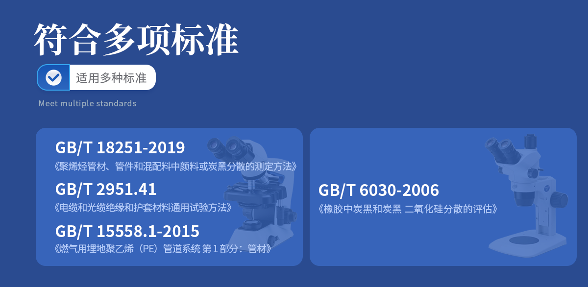 炭黑分散度檢測儀根據國際標準 GB/T 18251-2000針對聚烯烴管材、管件和混配料中顏料或炭黑分散的檢測儀器。該儀器適配基于軟件及相應的顯微鏡,通過對炭黑粒團的尺度、形態、及散布情況的測量,可以建立起這些參數與力學性能、抗靜電性能、吸濕性能等宏觀性能指標的內在聯系。對塑料材料的品質保障、生產工藝、新品研發產生積極影響,同時推進企業和行業技術水平的快速提升。