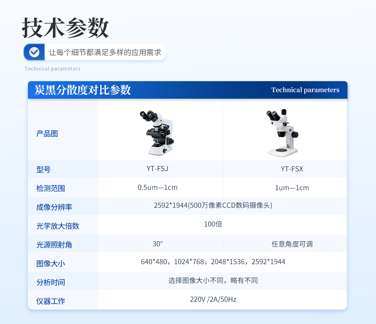 | 1、檢測范圍 0.5um—1cm; | 2、成像分辨率2592*1944(500萬像素CCD數碼攝像頭); | 3、光學放大倍數 100倍 | 4、光源照射角 30°; | 5、圖像大小 640*480,1024*768,2048*1536,2592*1944; | 6、分析時間 選擇圖像大小不同,略有不同; | 7、儀器工作電源 220V /2A/50Hz |