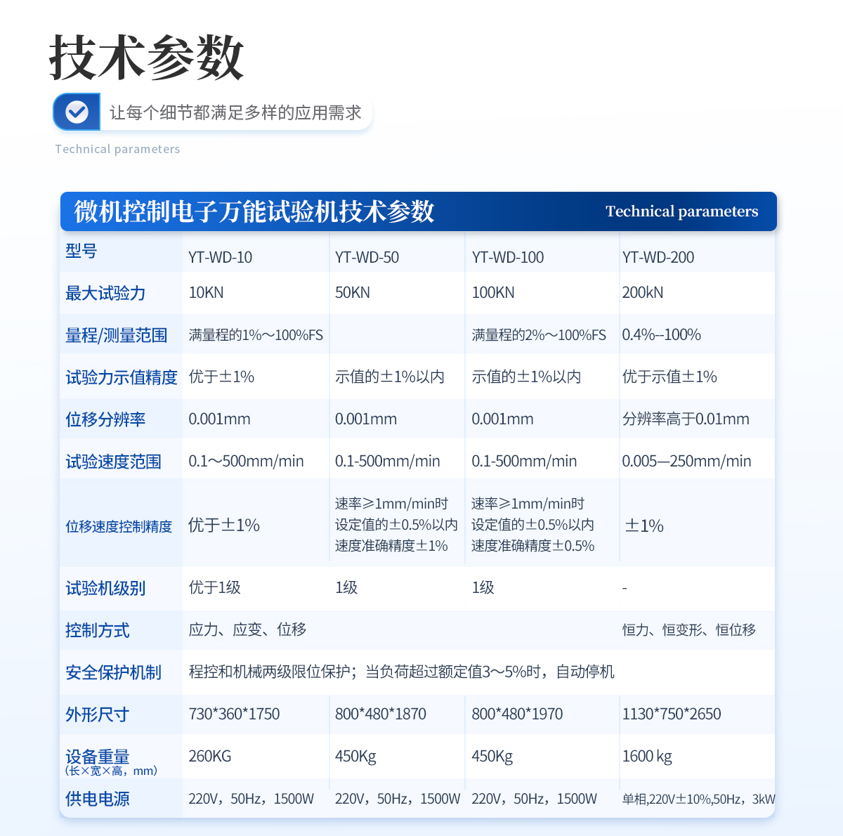 該系列萬能試驗機適用于橡膠、塑料、紡織物、防水材料、電線電纜、網(wǎng)繩、金屬絲、金屬棒、金屬板、各種金屬、非金屬及復合材料的力學性能指標的測試,如各種拉伸試驗,通過更改附具便可輕松完成壓縮、彎曲、剪切、撕裂、剝離、穿刺等試驗。7寸TFT彩色觸摸屏,直接輸入試驗參數(shù),中英文操作界面層層提示,用戶無需操作手冊即可輕松操作。本拉力試驗機具有試驗力數(shù)字顯示,試驗速度連續(xù)可調(diào),試樣拉斷自動停機,峰值保持等功能,試驗結(jié)果完全符合國家相關(guān)標準的要求。