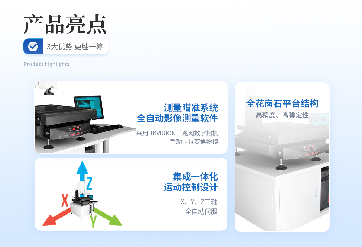 ? 三軸均采用精密型直線導軌、精密級滾珠絲桿傳動,噪音低振動小,動態幾何誤差變形*小。 | ? 采用優質花崗巖大理石底座、立柱,具有良好的溫度穩定性、抗實效變形能力 。 | ? 采用花崗巖大理石工作臺,變形小、保證高速運行的定位精度及穩態性能。 | ? 有限元結構分析及優化結構設計為該系列保證了系統整體的高精度及高穩定性。 | ? 采用多功能集成式控制器和高性能伺服電機驅動,實現全閉環控制 。 |