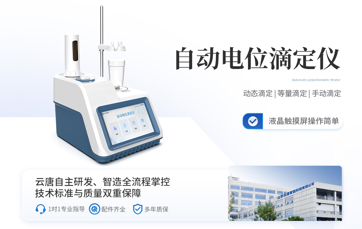 自動電位滴定儀是一種用于化學分析的精密儀器,他通過自動添加滴定劑來確定樣品中特定成分的濃度。該儀器基于電位滴定原理工作,即根據在滴定過程中電池電動勢的變化來確定滴定終點的一款滴定設備。設備滿足國家檢定規程JJG 814-2015《自動電位滴定儀》儀器級別中的0.05級別,即儀器**示值誤差為±1.5%,儀器示值重復性≤0.2%